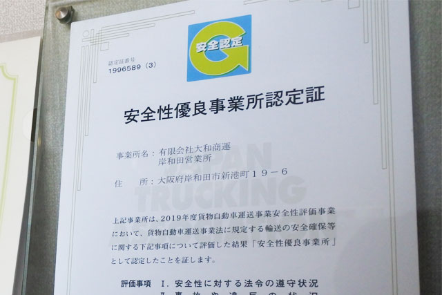 全国貨物自動車運送適正化事業実施機関である社団法人全日本トラック協会は、トラック運送事業者の交通安全対策などへの事業所単位での取り組みを評価し、一定の基準をクリアした事業所を認定する貨物自動車運送事業安全性評価事業を実施しています。